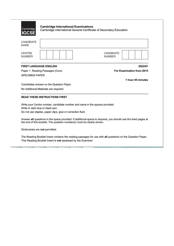 Cambridge Checkpoint English P1 Specimen 2012 English Past Papers Poems For Students Past Papers